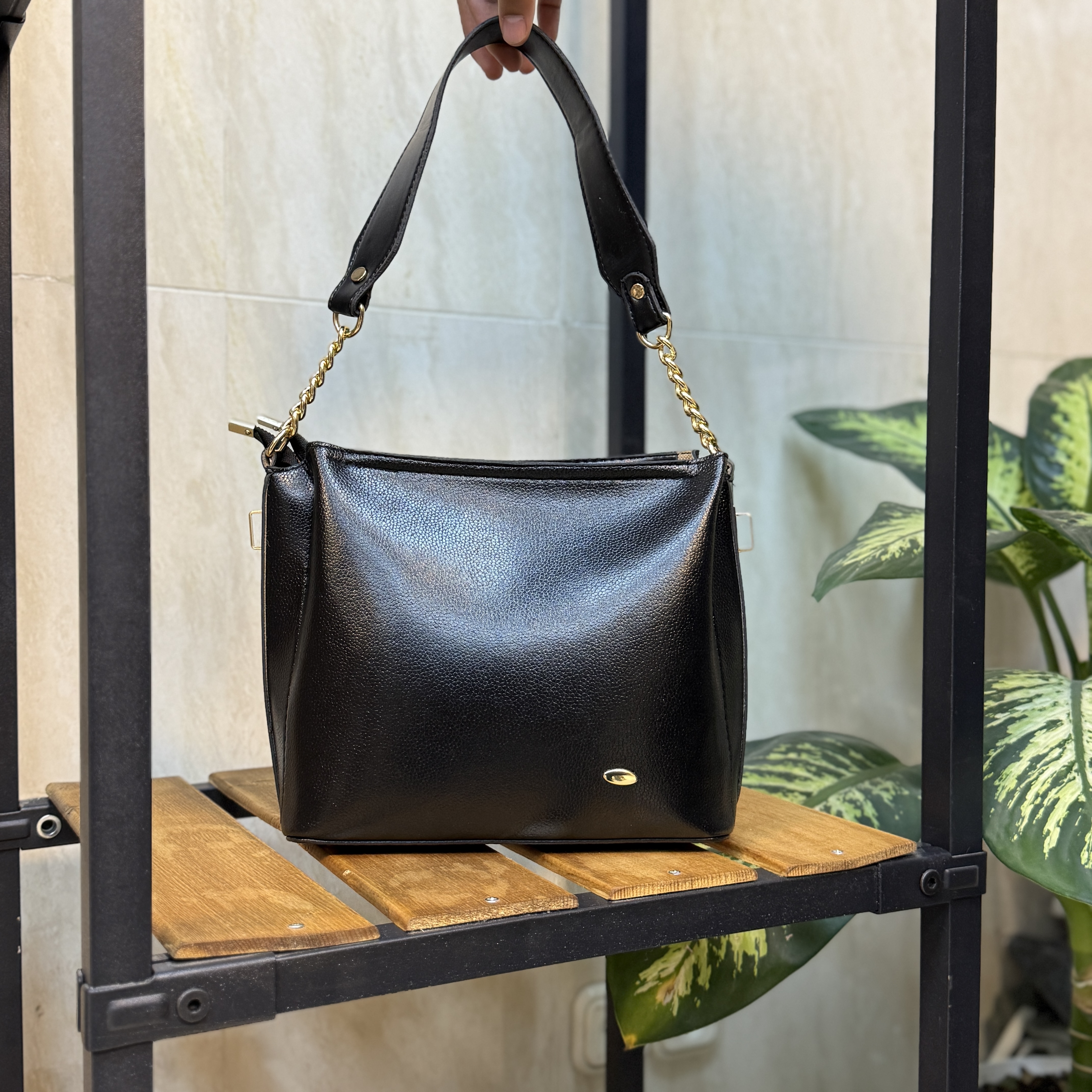 کیف دستی زنانه که با بند جداگانه به صورت دوشی هم میتوان استفاده کرد. جنس رویه چرم مصنوعی با کیفیت و داخل آستر